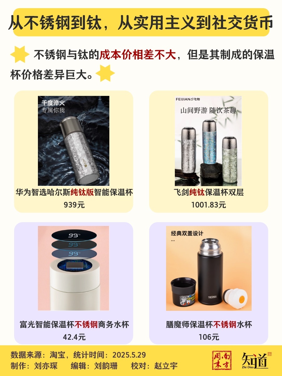 当年轻人手举两三百元的Stanley保温杯拍照打卡时,中年人拿起了千元的钛制保温杯喝茶。