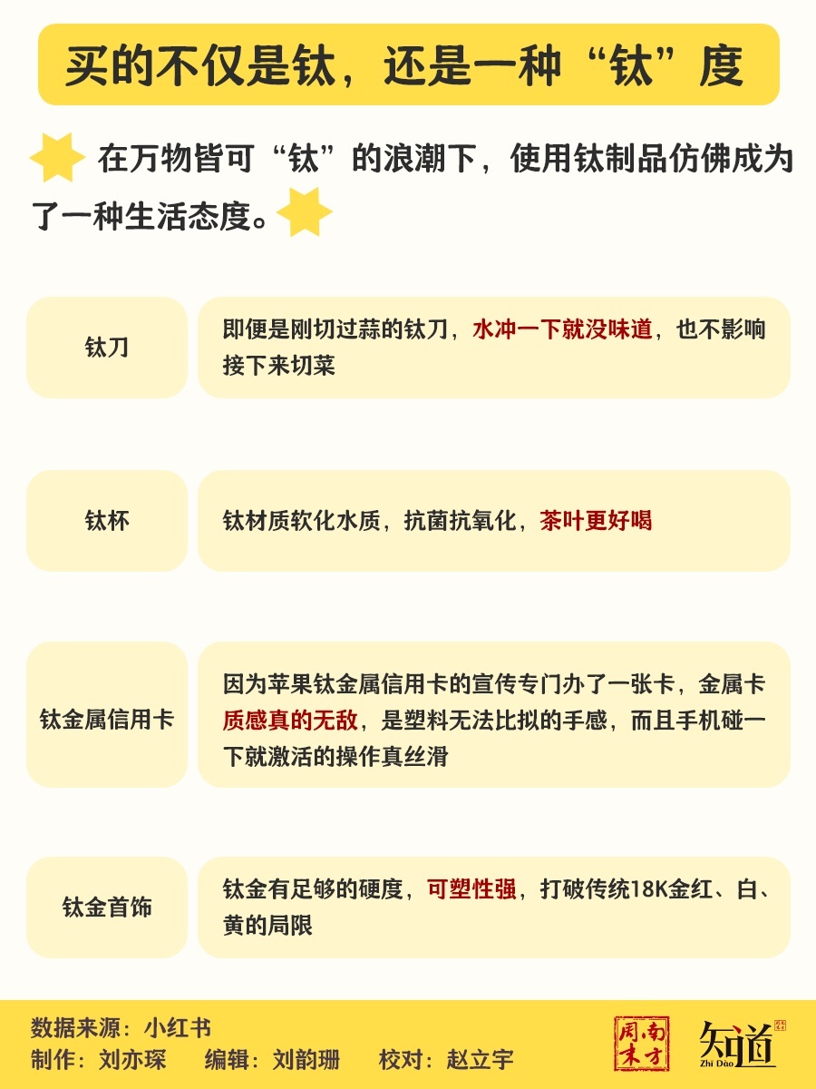 不仅有钛杯,如今的“钛材质”已经被纳入了中产杯具、厨具的鄙视链。在万物皆可“钛”的浪潮下,使用钛制品仿佛成为了一种生活态度。